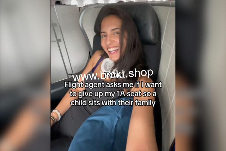 The 6-second video, captioned “POV: Flight agent asks me if I want to give up my 1A seat so a child sits with their family,” shows her lounging on her first class seat, while a popular TikTok audio drop — “Girl, f – – k them kids and f – – k you too” — plays in the background.