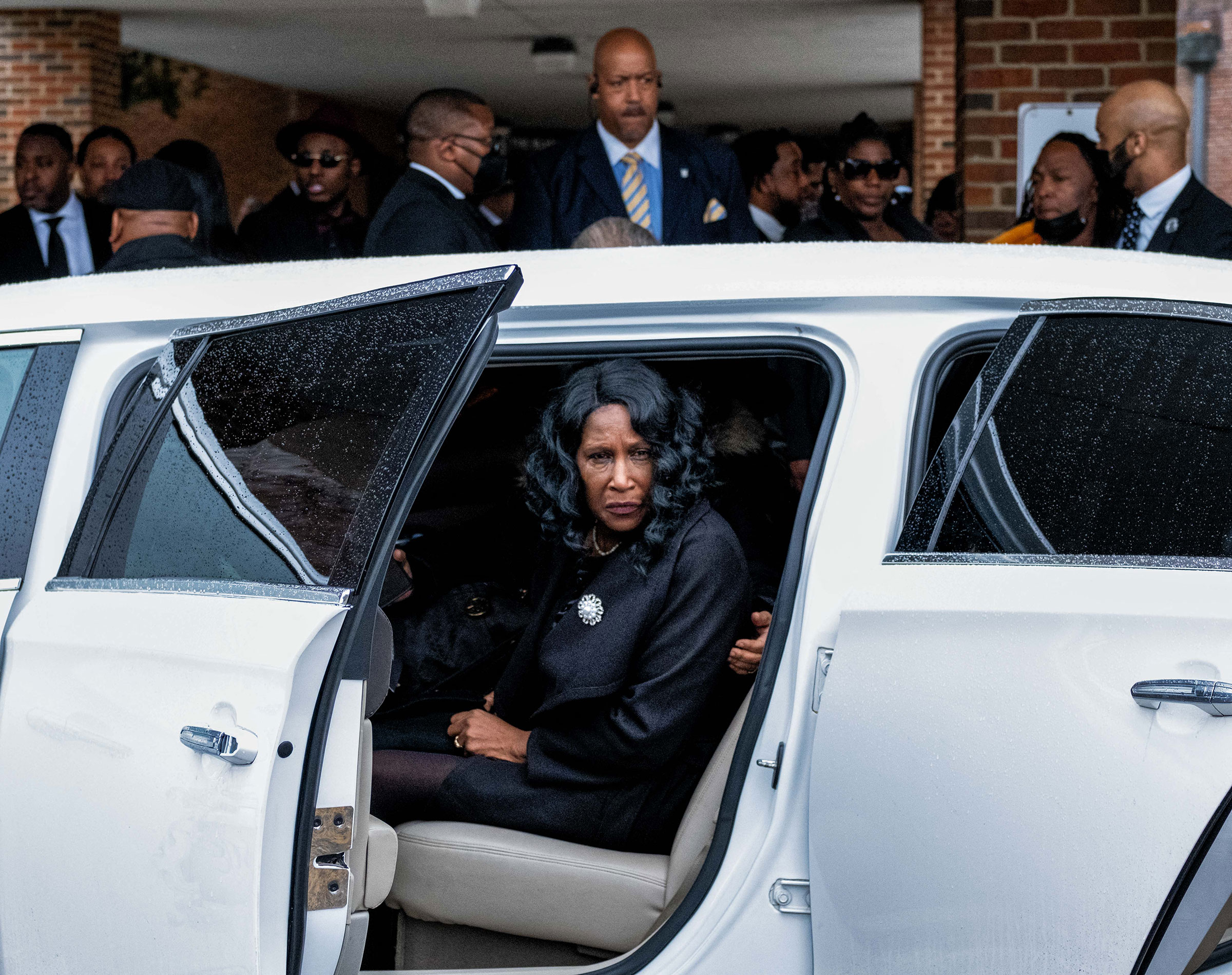 Tyre Nichols' mother RowVaughn Wells looks on after the funeral service for her son at Mississippi Boulevard Christian Church in Memphis, Tenn., on Feb. 1. Nichols, 29, was stopped on Jan. 7, for what the Memphis Police Department said was reckless driving. After a chase ensued, "police brutalized him to the point of being unrecognizable," family attorneys Ben Crump and Antonio Romanucci said in a statement. Nichols was taken to hospital in critical condition, according to police, where he died on Jan. 10.