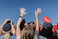A woman holding a girl reacts after Israeli airstrikes hit Ridwan neighborhood of Gaza City, on Oct. 23.
