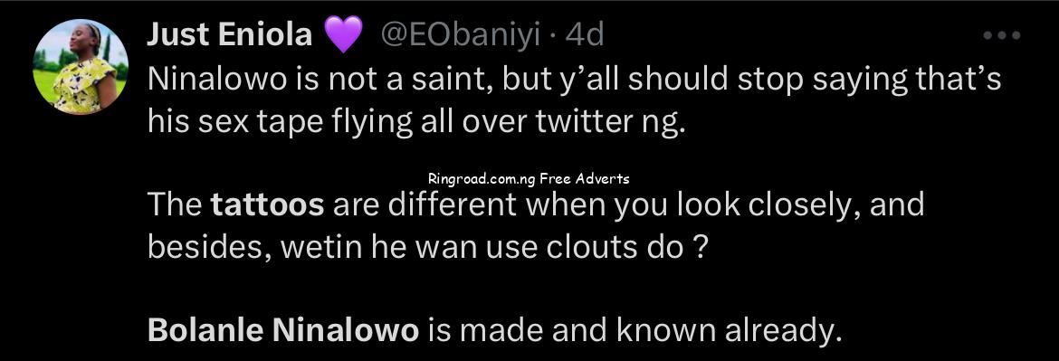 When one of Nollywood’s hottest actors has to issue a video disclaimer over a racy tape, you just know it’s going to be a long year. Ninalowo had to show fans what his tattoo looks like and distance himself from a similar dude who was beating his meat in a viral clip.