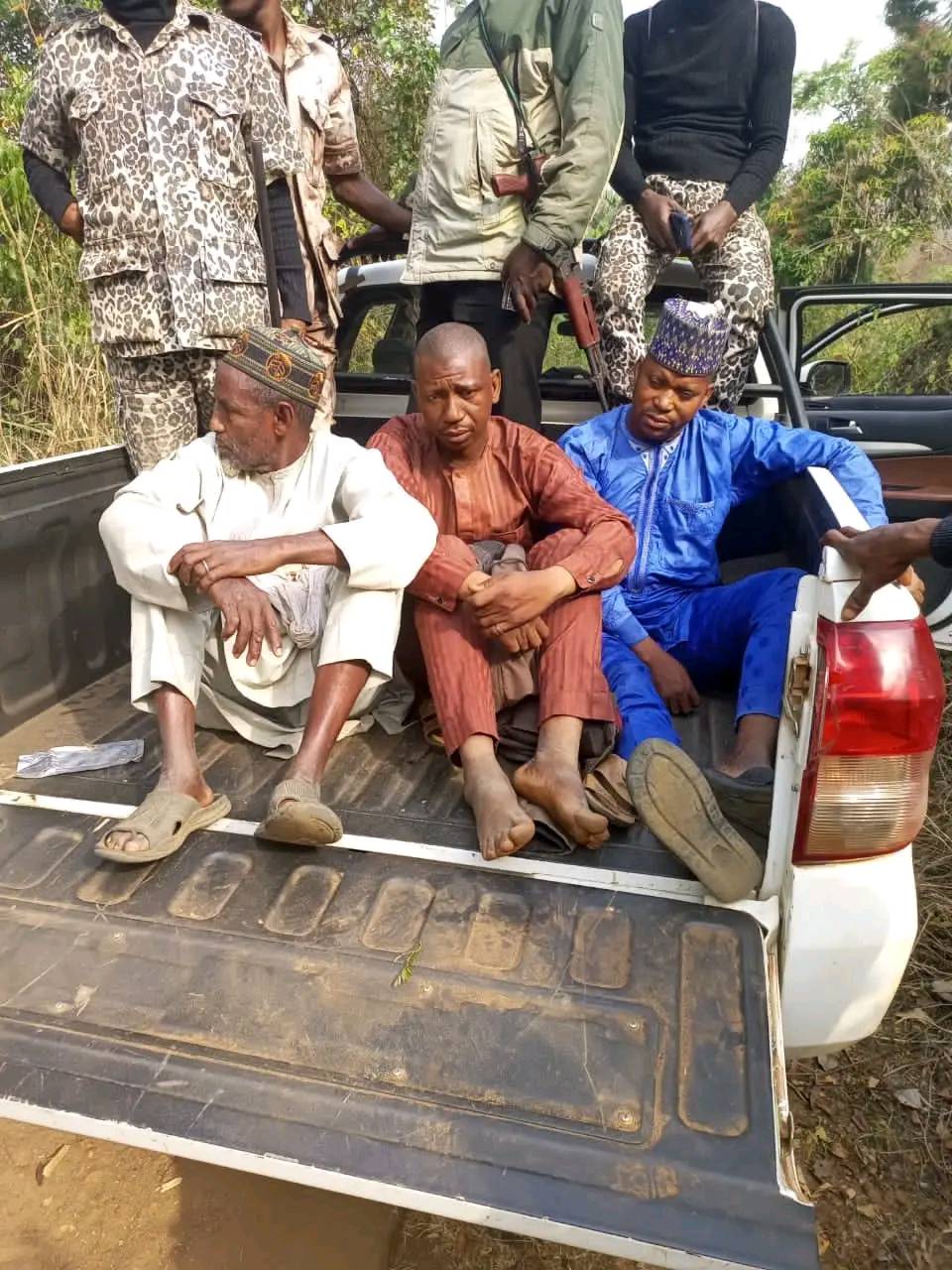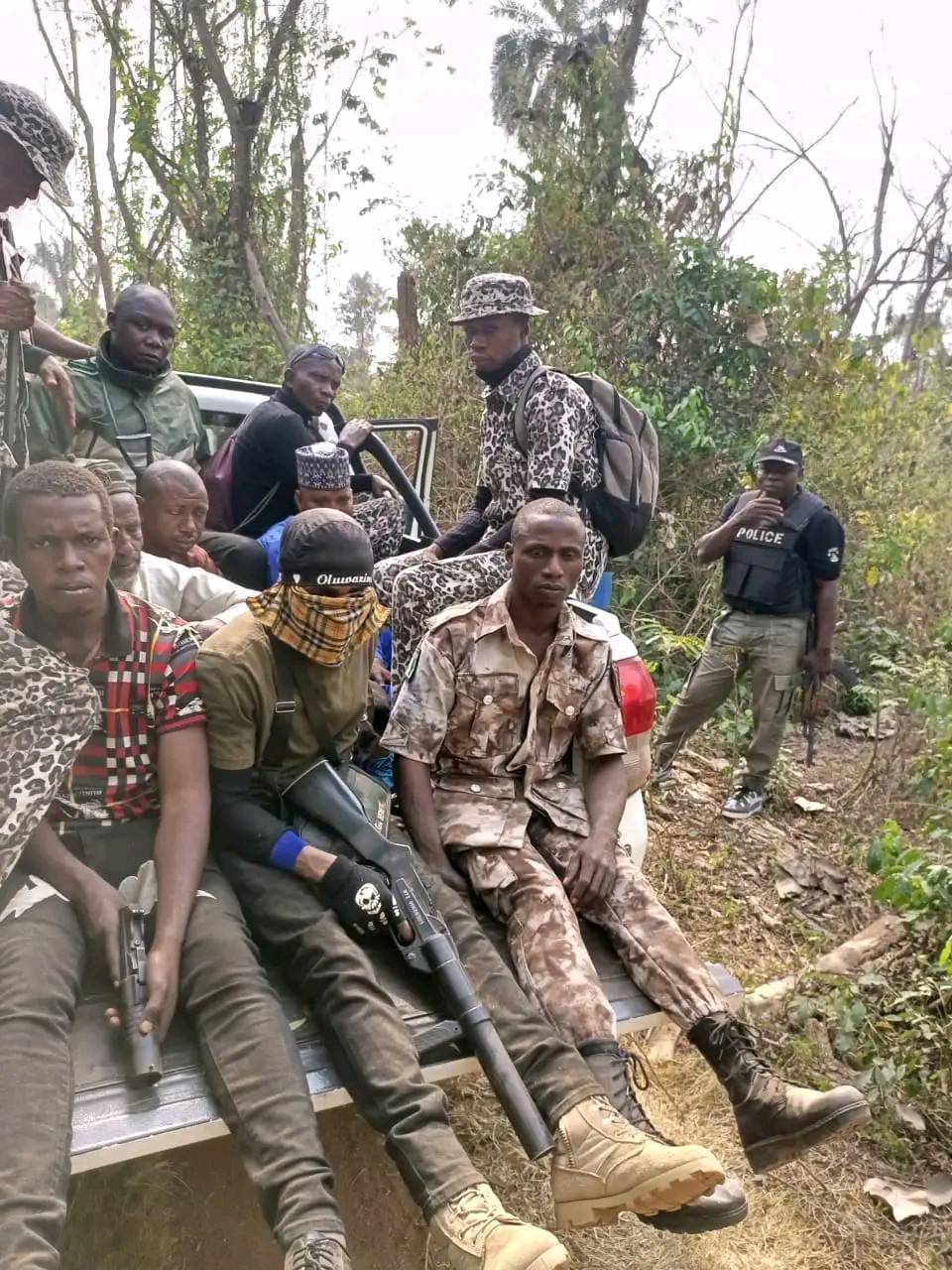 In a bid to flush out criminal elements especially kidnappers out of the State, a combined team of the police, NSCDC, Amotekun, O.P.C and local hunters today January 31 embarked on a bush combing operation through Oke-Osun, Ikere/Igbo-Okah to the thick forest around Iju/Ikere boundary. During the Operation, five suspected kidnappers namely Usman Jelili, Mohammed Bande, Abubakar Aliu, Isah Abdullahi and Suleiman Abdullahi were arrested. During interrogation, the suspects claimed to be herdsmen but it was later discovered that none of them had a cattle and no cattle was found with them in the forest where they were arrested. Confirming the arrest to newsmen, the spokesperson of the command, DSP Abutu Sunday said items recovered from the suspects include Two Motorcycles, one cutlass, one jack knife/ dagger and four phones. The post Five suspected kidnappers claiming to be Fulani herdsmen arrested in Ekiti (photos) appeared first on .