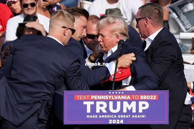 Former US President, Donald Trump was rushed off the stage just minutes into his rally in Pennsylvania on Saturday, July 13, after gunshots were fired towards him.Secret service officials say Trump is currently safe and is expected to survive. He had blood on the side of his head and his ear. In the rally, as Trump was speaking, gunshots were heard. Then Trump reached for the side of his face as popping sounds rang out over the rally.Secret Service officials then shouted at Trump to get down as they rushed the stage and surrounded him. He was quickly escorted into a vehicle, walking off the stage with agents on all sides. A Secret Service spokesperson said in a statement posted to X that “the former President is safe.” Follow us on Instagram…Powered By ADNG.NG free ads A post shared by www.adng.ng Get free adverts. An Ad search engine (@www.adng.ng Get free adverts. An Ad search engineofficial) Shots fired at Trump rally. Character assassination, failed. Attempt to deplete savings, failed. Attempt to silence, failed. Only option left, actual assassination attempt, FAILED. Ive been saying repeatedly, double down on private security! pic.twitter.com/9goXxaxSxk Patrick Bet-David (@patrickbetdavid) July 13, 2024 “This is now an active Secret Service investigation and further information will be released when available,” agency spokesperson Anthony Guglielmi posted. THIS IS THE MOST BADASS MOMENT IN MODERN AMERICAN HISTROY pic.twitter.com/xCwgv4ENsB Matt Wallace (@MattWallace888) July 13, 2024 Trump’s spokesperson Steven Cheung said that the former president “thanks law enforcement and first responders for their quick action during this heinous act.””He is fine and is being checked out at a local medical facility,” Cheung said. “More details will follow.” President Joe Biden, who is in Delaware for the weekend, has been briefed on the situation, according to a senior White House official. The post Donald Trump survives ass@ssination attempt after he is sh0t on side of the head on live TV (photos/videos) appeared first on swordpress.com.ng.