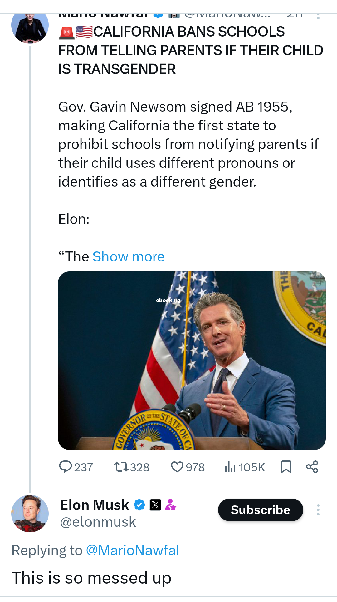 Im Elon Musk has announced he will officially be moving his company’s headquarters to Texas. Musk announced on X on Tuesday, July 16 that SpaceX is relocating from Hawthorne, California, to Starbase, Texas, citing a new law in California banning schools from telling parents their child is transgender Saying the laws are “attacking both families and companies” Musk also said X would also move its headquarters to Austin from San Francisco, claiming that he has “had enough of dodging gangs of violent drug addicts just to get in and out of the building.” The billionaire CEO said the decision was a response to a bill signed Monday by Gov. Gavin Newsom that prohibits “forced disclosure” rules in public K-12 schools.Eight Republican run states now have laws that require teachers to notify parents if a child changes their name, pronouns, or gender identity at school but California is the first to outlaw such requirements.Musk, who had a highly public falling out with one of his children over their gender identity, called the move “the last straw” and alleged families would have to “leave California to protect their children.”Musk was behind Tesla’s recent move to Texas as well, and previously vowed to move SpaceX’s business incorporation from Delaware to the Lone Star state.. The post Elon musk moves his company HQ from California to Texas in response to new law banning schools from telling parents their child is tr@nsg3nder Appeared first on adng.ng FREE ADS TO 10000 SOCIAL MEIDIA USERS DAILY.