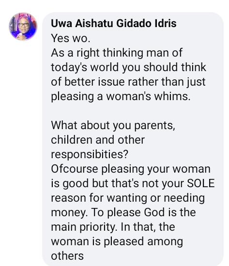 A Nigerian lady, Evelyn Nneka Obasi, has said that if the first reason a man wants to make money is so he can satisfy his woman’s needs then he is a stupid person.