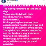 ”Too many early and untimely de@ths. It because we abandoned our traditional ways. Our ancestors and spirits are angry”- actor Yul Edochie