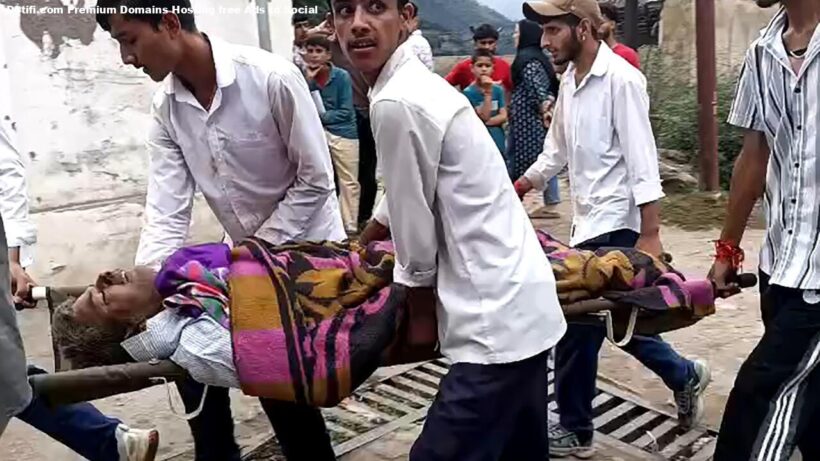 Crowds gathered at a Kishtwar hospital while people carried some of the injured on stretchers.