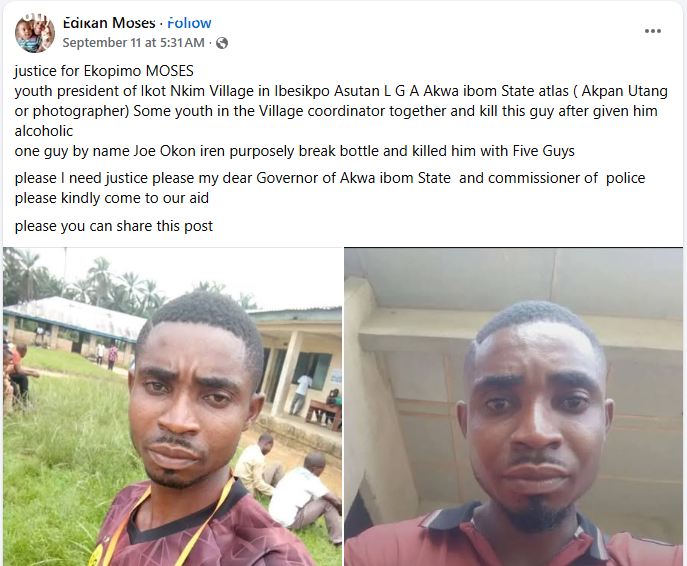 The Akwa Ibom State command has arrested a 37-year-old man, Joseph Eren, over the d3ath of his neighbour, Ekopimo Moses, during a violent altercation in the Ibesikpo Local Government Area of the state. The spokesperson of the command, DSP Timfon John, who disclosed this in a statement on Sunday, September 14, 2025 said the suspect was involved in a heated argument with Moses, a youth leader in the local government. The incident, which occurred on Thursday, September 11, 2025 degenerated into a physical fight during which both of them resorted to using machetes. Moses sustained severe injuries and was rushed to the hospital for urgent medical treatment, where he d!ed. The Akwa Ibom State Police Command has arrested a suspect in connection with the death of a man following a violent altercation in Ibesikpo Asutan Local Government Area, the statement read. “On Thursday, September 11, 2025, at approximately 6:00 PM, Operatives of the Command received a report from a village head (name withheld). The village head stated that the community youth president, Ekopimo Effiong Moses, a 34-year-old male, had a misunderstanding with Joseph Okon Eren, a 37-year-old male who resides in the village but is originally from Ikot Obiondobo in Uruan LGA. “The disagreement escalated into a physical fight, during which both men used machetes. Ekopimo Effiong Moses sustained severe injuries and was rushed to the Hospital for urgent medical treatment. He was later pronounced d3ad by the doctor on duty. “The suspect, Joseph Okon Eren, has been arrested and is currently in police custody. A machete, believed to be the weapon used in the incident, has been recovered. The body of the deceased has been deposited at the morgue, the statement concluded. The PPRO added that the command has launched a discreet investigation into the incident, adding that further details would be communicated to the public as the investigation progresses. The post Akwa Ibom youth leader macheted to d3ath by his neighbour appeared first on Time.com.ng.