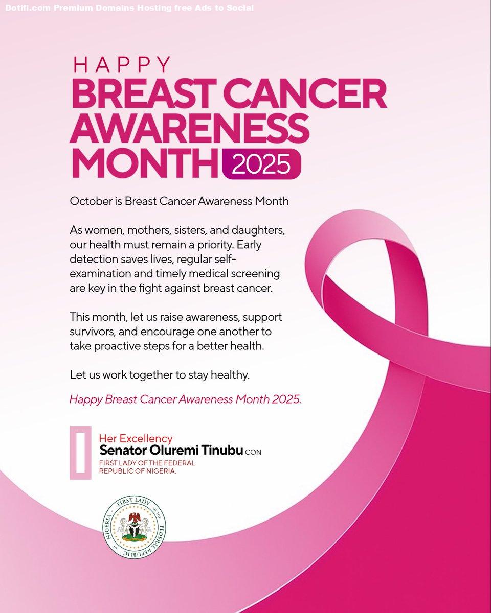 Her Excellency Oluremi Tinubu Champions Women’s Health in Breast Cancer Awareness Month 2025 Message