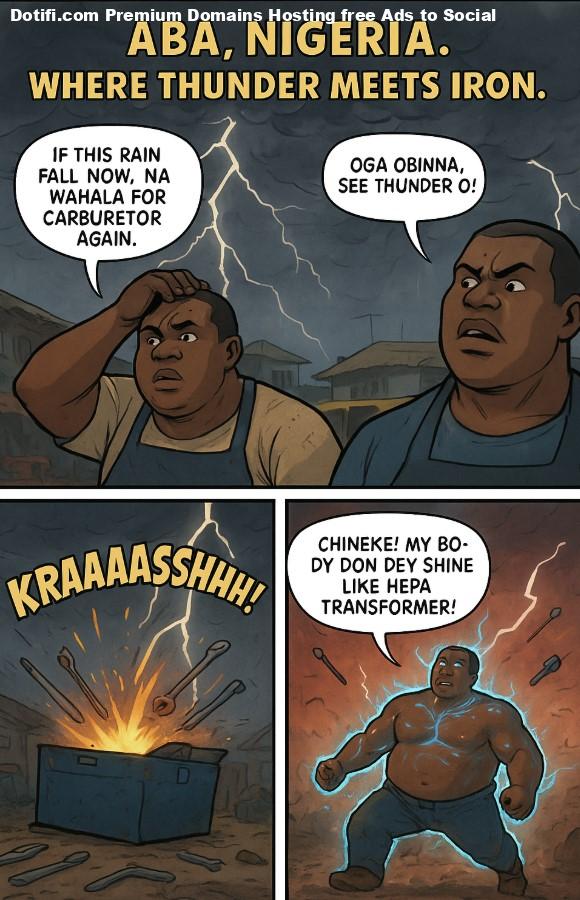 A flash of lightning slams into his metal toolbox. Sparks fly. Obinna is thrown back — but instead of dying, his body starts to glow.