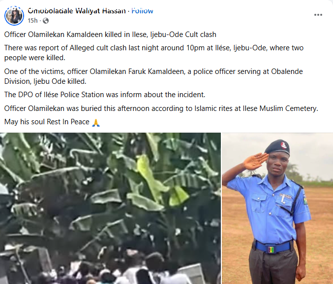 A suspected cult clash in the Ilese area of Ijebu-Ode, Ogun State, has left a police officer and one yet-to-be-identified man d3ad. It was gathered that the clash erupted on Saturday night, November 29, 2025 when suspected cultists stormed the area and began shooting sporadically. A community source told punch that the attackers k!lled a police officer identified as Olamilekan Faruk Kamaldeen and another man whose identity had yet to be ascertained. He added that the violence was believed to be a confrontation between members of the Aiye confraternity and the Eiye confraternity. Tragedy struck last night around 10 p.m. at Ilese via Ijebu-Ode, as two individuals were k!lled in a suspected cult clash between Aye and Eiye confraternities, the source said. One of the victims is a police officer serving at Obalende Division, Ijebu-Ode. He is known as Olamilekan, while the second person was unknown. They were shooting sporadically when they stormed the area and left residents in panic.” The Ogun State Commissioner of Police, Lanre Ogunlowo, confirmed the incident but said he was yet to receive a full briefing on the circumstances surrounding the attack. I can confirm that a police officer was a victim in the incident. I am still waiting for the details of what really happened, he said. The post Police officer and passerby k!lled as rival cult groups clash in Ogun appeared first on Time.com.ng.