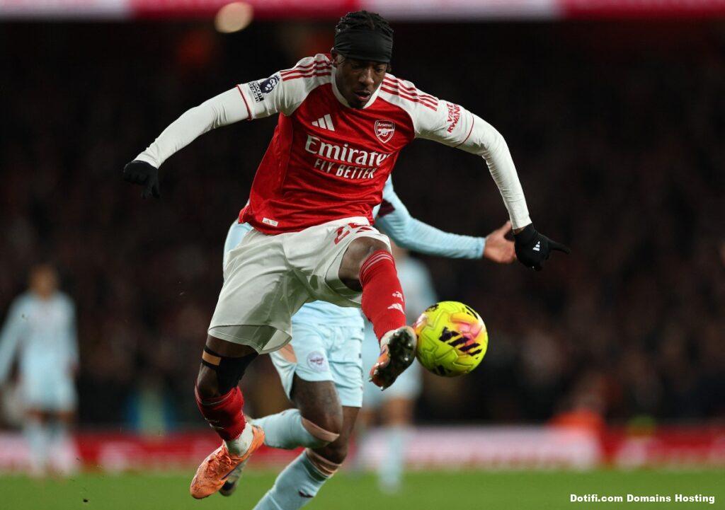 Arsenal’s English forward Noni Madueke controls the ball during the English Premier League football match between Arsenal and Brentford at the Emirates Stadium in London on December 3, 2025. (Photo by Adrian Dennis / AFP)