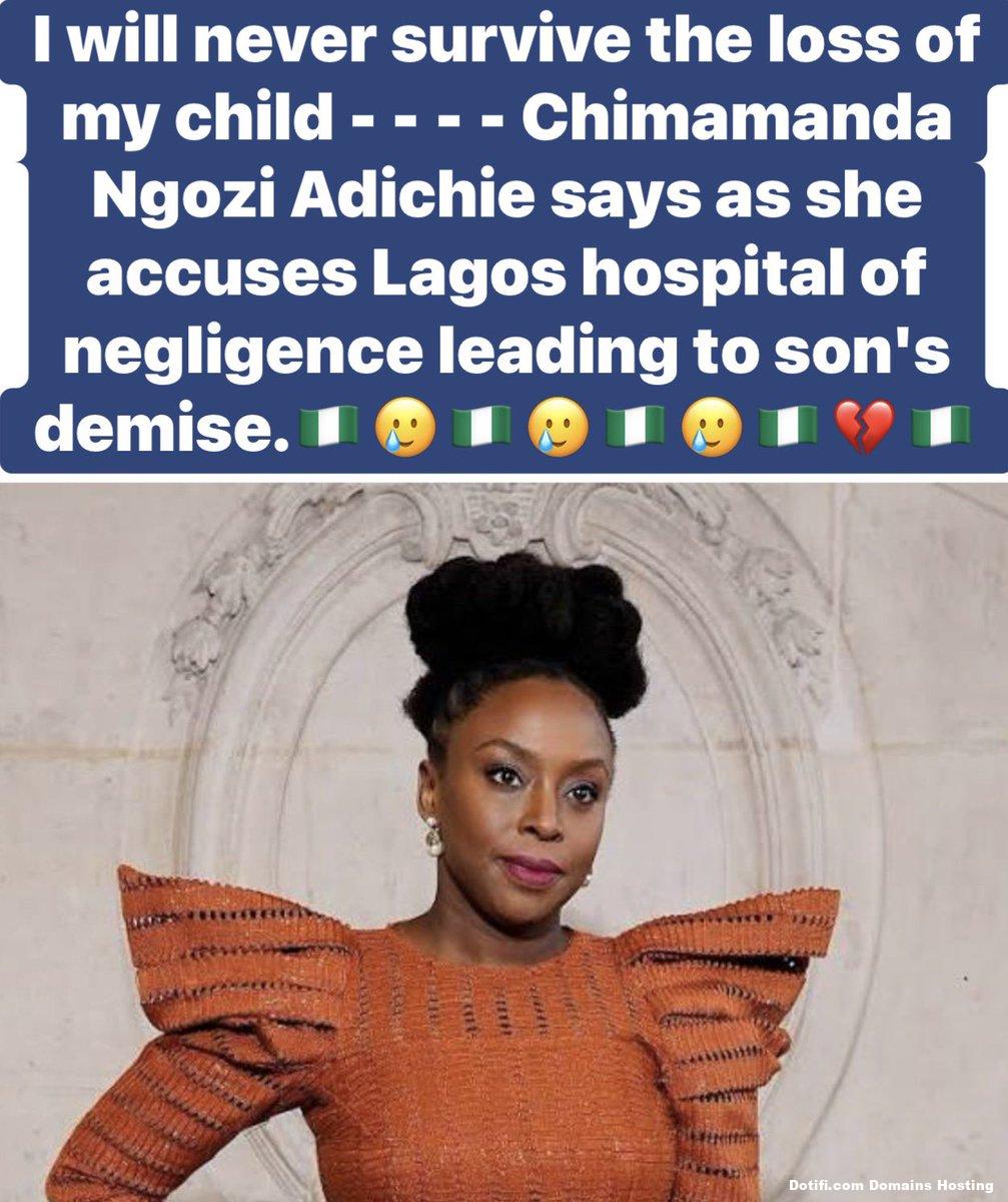 Renounced author, Chimamanda Ngozi Adichie, has accused a Lagos-based hospital of negligence leading to the demise of her 21-month-old son, Nkanu. In a personal statement released to family members and close friends, Chimamanda gave a detailed account of the circumstances surrounding his de@th. The statement reads “My son would be alive today if not for an incident at Euracare Hospital on January 6th. We were in Lagos for Christmas. Nkanu had what we first thought was just a cold, but soon turned into a very serious infection and he was admitted to Atlantis hospital. He was to travel to the US the next day, January 7th, accompanied by Travelling Doctors. A team at Johns Hopkins was waiting to receive him in Baltimore. The Hopkins team had asked for a lumbar puncture test and an MRI. The Nigerian team had also decided to put in a ‘central line’ (used to administer iv medications) in preparation for Nkanu’s flight. Atlantis hospital referred us to Euracare Hospital, which was said to be the best place to have the procedures done. The morning of the 6th, we left Atlantis hospital for Euracare, Nkanu carried in his father’s arms. We were told he would need to be sedated to prevent him from moving during the MRI and the ‘central line’ procedure. I was waiting just outside the theater. I saw people, including Dr M, rushing into the theater and immediately knew something had happened. A short time later, Dr M came out and told me Nkanu had been given too much propofol by the anesthesiologist, had become unresponsive and was quickly resuscitated. But suddenly Nkanu was on a ventilator, he was intubated and placed in the ICU. The next thing I heard was that he had seizures. Cardiac arrest. All these had never happened before. Some hours later, Nkanu was gone It turns out that Nkanu was NEVER monitored after being given too much propofol. The anesthesiologist had just casually carried Nkanu on his shoulder to the theater, so nobody knows when exactly Nkanu became unresponsive. How can you sedate a sick child and neglect to monitor him? Later, after the ‘central line’ procedure, the anesthesiologist casually switched off Nkanu’s oxygen and again decided to carry him on his shoulder to the ICU! The anesthesiologist was CRIMINALLY negligent. He was fatally casual and careless with the precious life of a child. No proper protocol was followed. We brought in a child who was unwell but stable and scheduled to travel the next day. We came to conduct basic procedures. And suddenly, our beautiful little boy was gone forever. It is like living your worst nightmare. I will never survive the loss of my child. We have now heard about two previous cases of this same anesthesiologist overdosing children. Why did Euracare allow him to keep working? This must never happen to another child”.The post I will never survive the loss of my child – Chimamanda Ngozi Adichie says as she accuses Lagos hospital of negligence leading to sons demise appeared first on Time.com.ng.