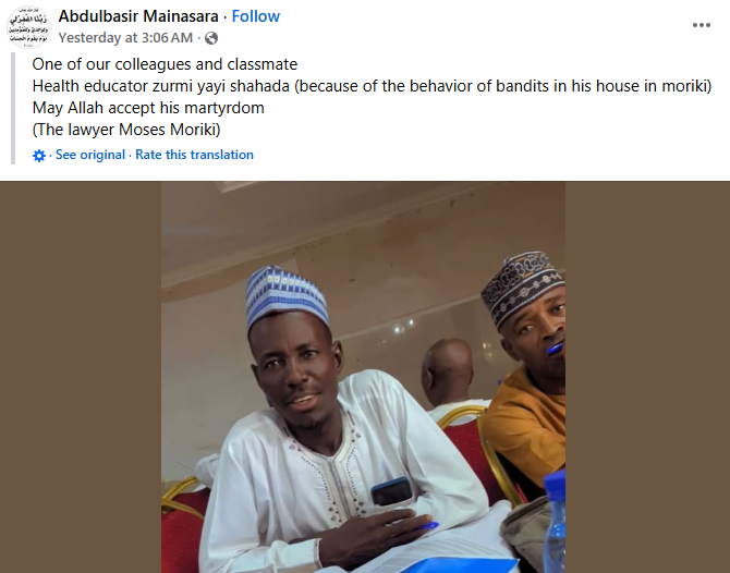 Armed men suspected to be bandits have k!lled a health educator Lawali Musa Moriki and abducted his four children in Sanyawa area of Moriki District, Zurmi Local Government Area of Zamfara State. The attack occurred at about 1:00 a.m. on February 10, 2026. According to security analyst Zagazola Mkama, the assailants shot Moriki d3ad before abducting an unspecified number of residents, including his children, two men and two women, to an unknown destination. Security forces were swiftly deployed to the scene to counter the attackers. The corpse of the deceased was evacuated to the General Hospital, Moriki, for autopsy. A manhunt for the fleeing suspects has been launched, with efforts focused on rescuing the abducted victims and arresting the perpetrators. The post Bandits k!ll Zamfara Health Educator, abduct his four children and others appeared first on Time.com.ng.