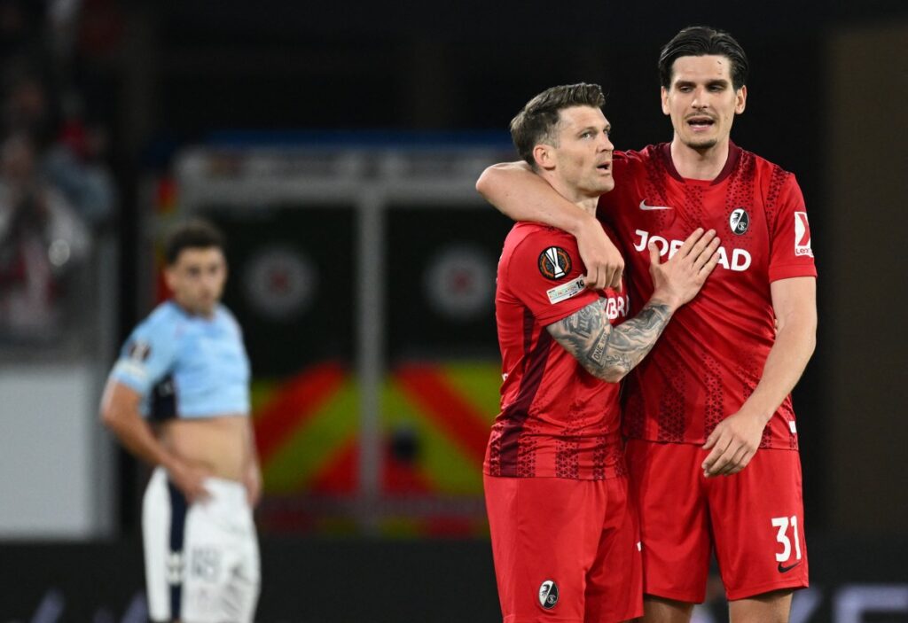 Niklas Beste doubled Freiburg’s lead at the end of a fine team move and Matthias Ginter headed in 12 minutes from time to secure a commanding first leg lead.